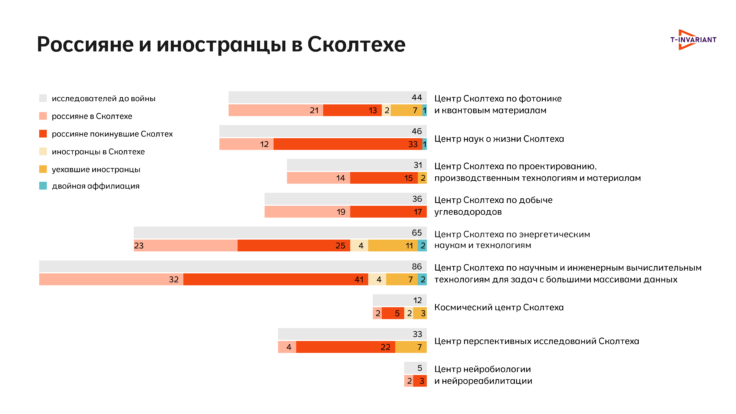 The inevitable consequence of the sanctions was a brain drain — among both visiting professors and Russian researchers who were unwilling to remain affiliated with a sanctioned institution. T-invariant analyzed the career trajectories of Skoltech’s staff and examined how the institute’s standing on the international academic stage has evolved.